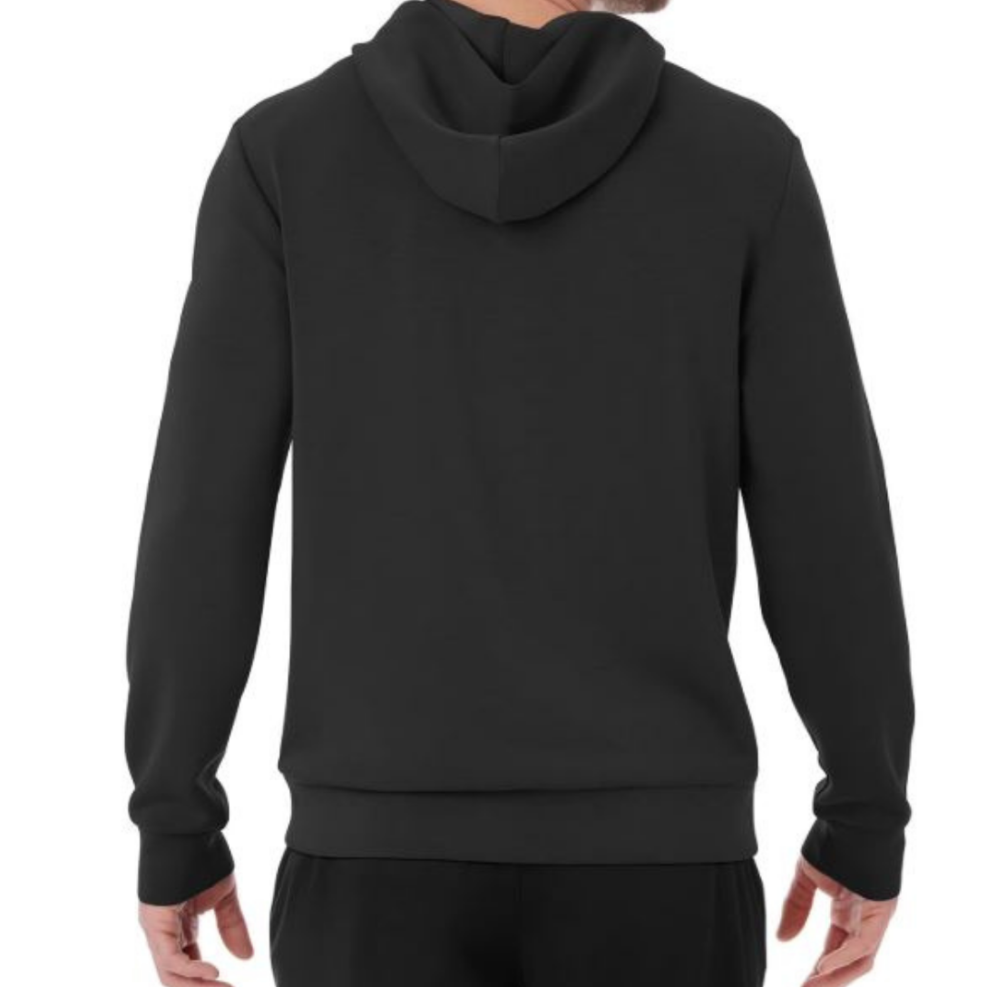 The pullover hoodie features a crossover hood for a contemporary style and added coverage. Self-banded cuffs and a secure waistband ensure a comfortable fit that stays in place throughout the day. A classic kangaroo pocket adds practical storage while completing the clean, everyday design.