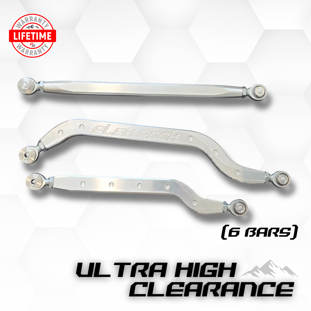 These Ultra High Clearance Radius Rods are manufactured from Billet Aerospace Grade T6 6061 Aluminum and are fully adjustable TOP AND BOTTOM with PTFE lined rods ends.